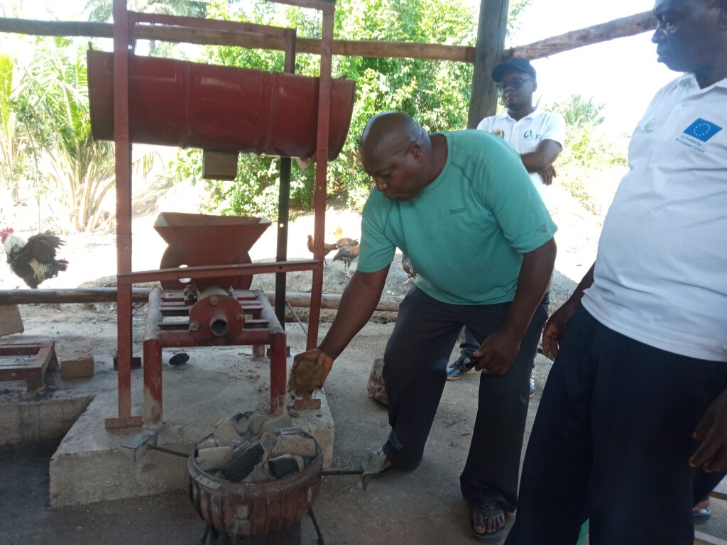 Anaongeza kuwa katika eneo analofanyia kazi kuna zaidi ya mashine 60 za kuchakata mchikichi zinazozalisha taka nyingi ikiwemo mapangasuli na mnyemwe, ambapo huzikusanya na kuzitumia kuzalisha nishati mbadala.